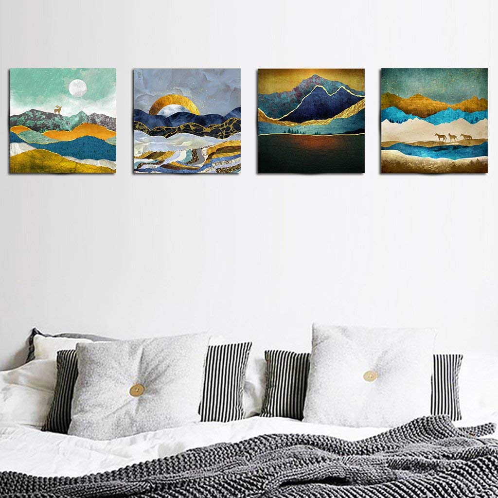 A set of 4 split 20" canvas. Size: 40x40(cm) 16x16(inch). Kits Including: Canvas(Mounted on wood frame), Brushes, Paints. It is a great gift for birthday, wedding or new accommodation.