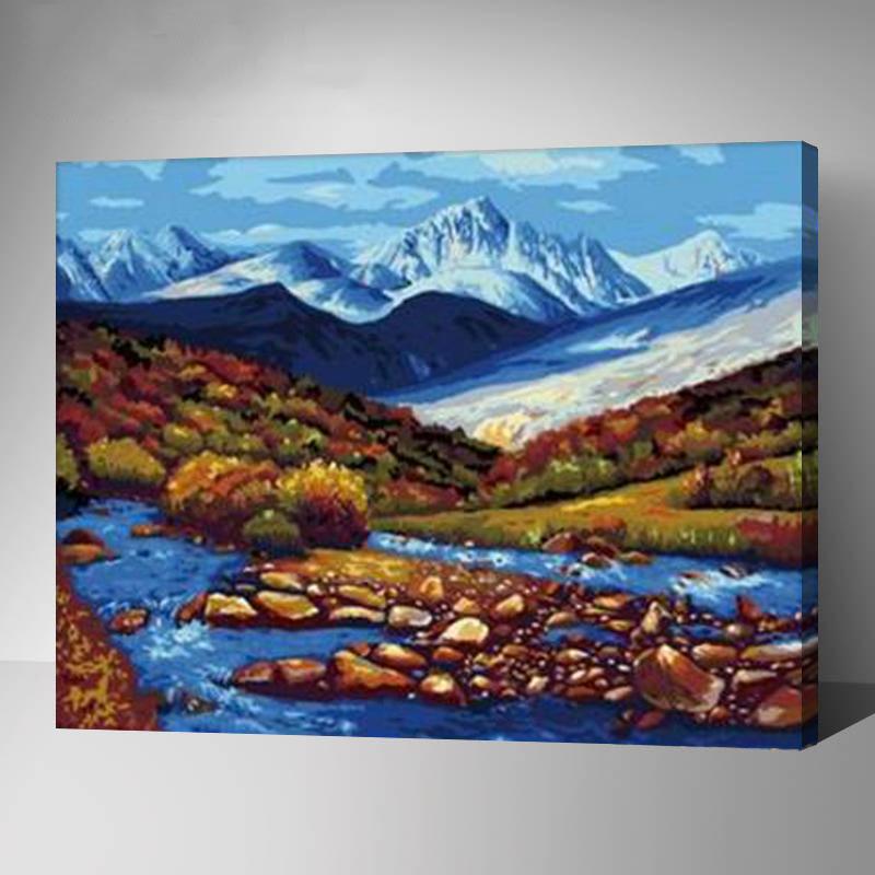 MADE4U [ Waters Series 3 ] [ 20" ] [ Wood Framed ] Paint By Numbers Kit with Brushes and Paints ( Snow Mountain and Creek HHGZG087 ) 的副本