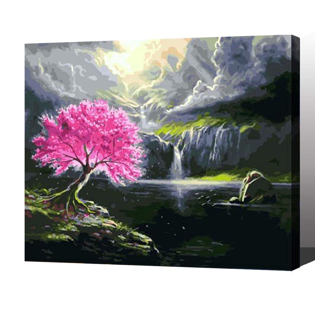 Size: 50x40(cm) 20x16(inch). Kits Including: Canvas(Mounted on wood frame), Brushes, Paints. It is a great gift for birthday, wedding or new accommodation.