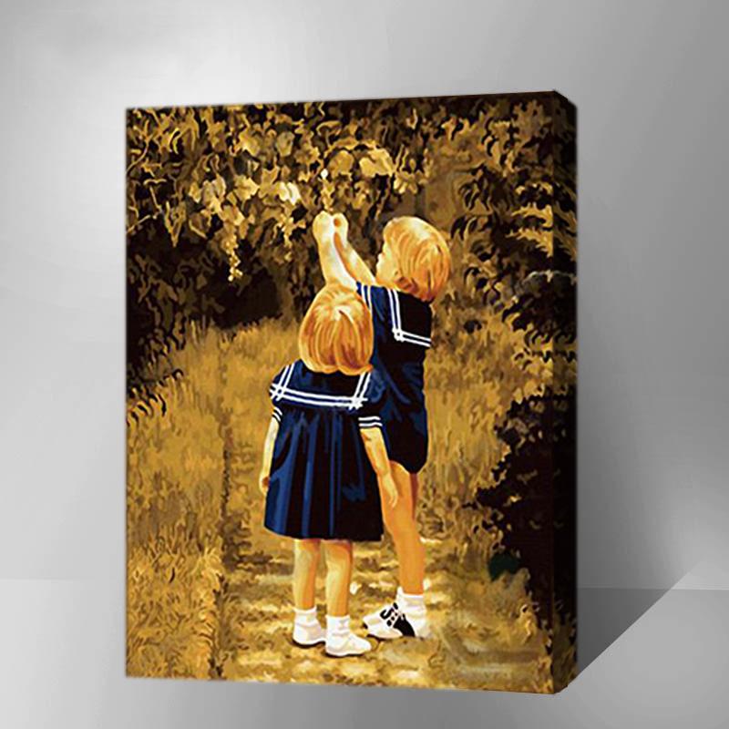 MADE4U [ Figure Series ] [ 20" ] [ Wood Framed ] Paint By Numbers Kit with Brushes and Paints (Childhood G229)