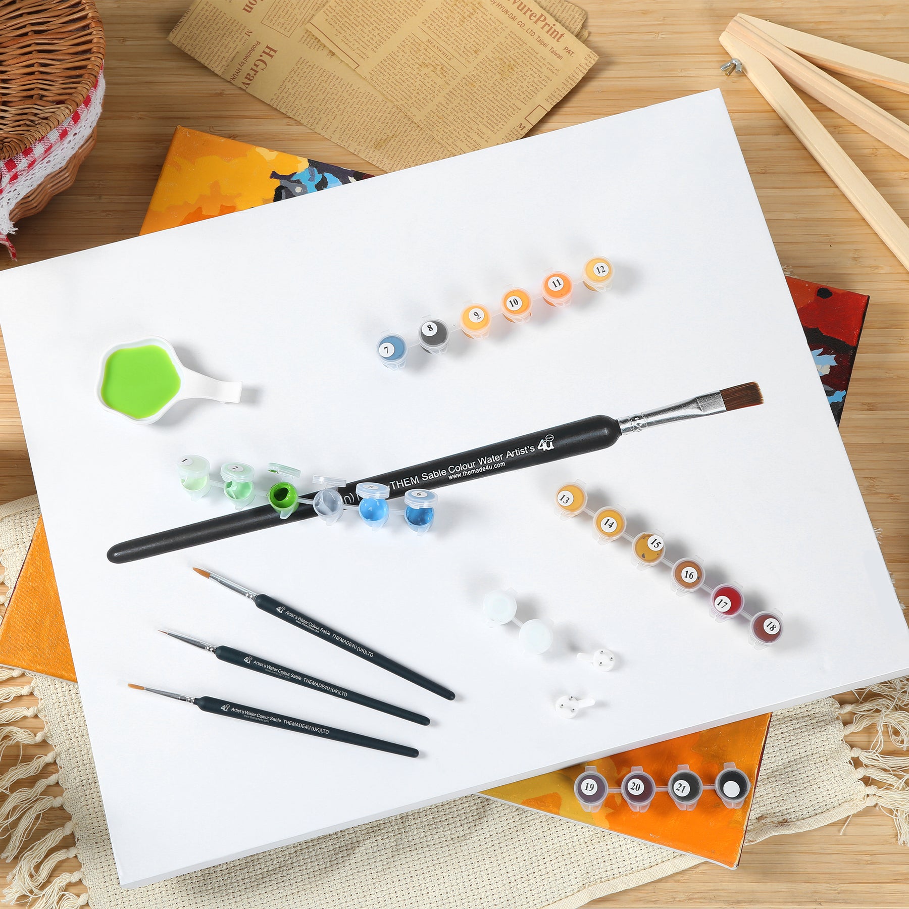 Paints - Paints are made from eco-friendly materials ( Acrylics. It is Fast-Dry so please keep lid closed when not use.)