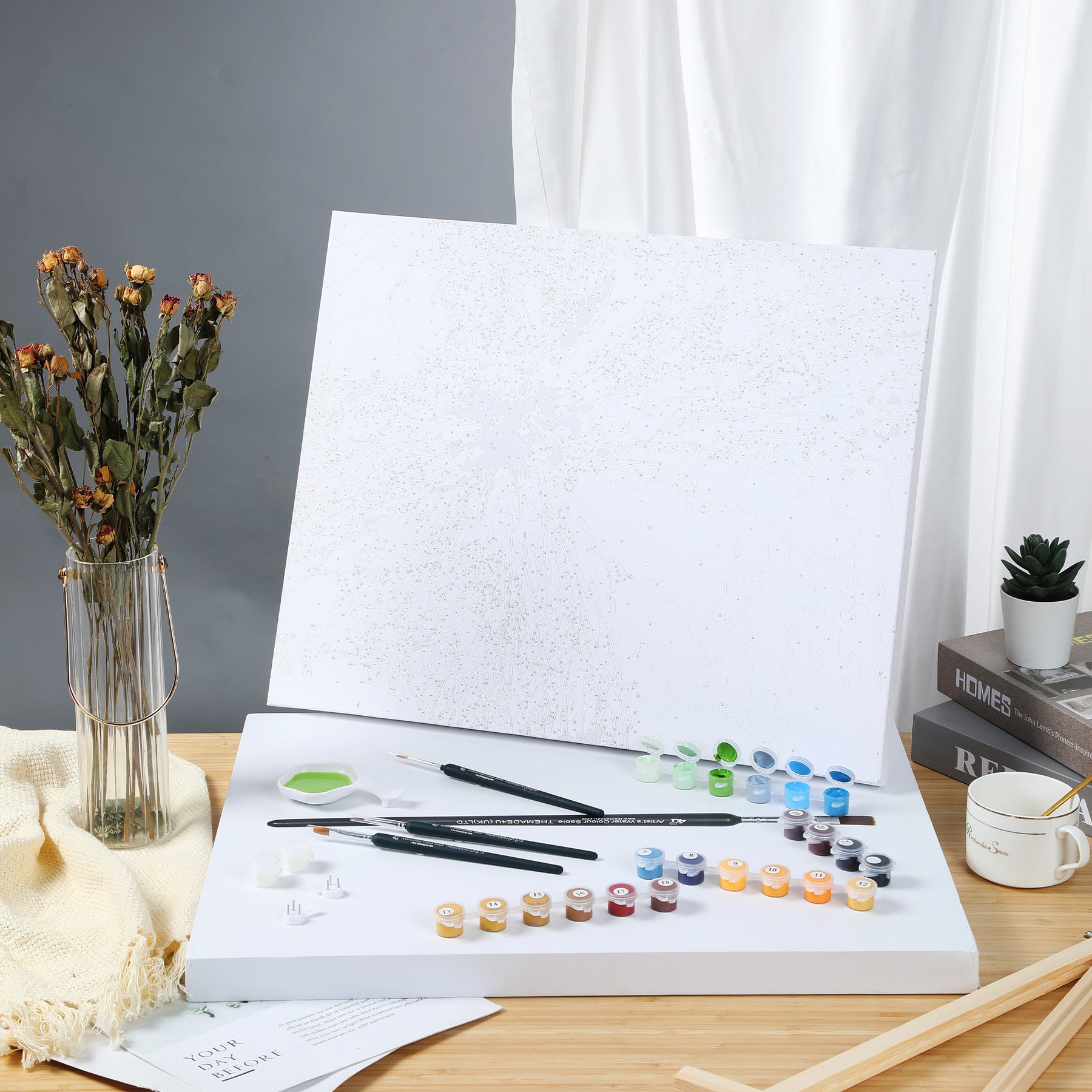 Size: 50x40 (cm) 20x16 (inch). Kits Including: Canvas ( Mounted on wood frame ), Brushes, Paints. It is a great gift for birthday, wedding or new accommodation.