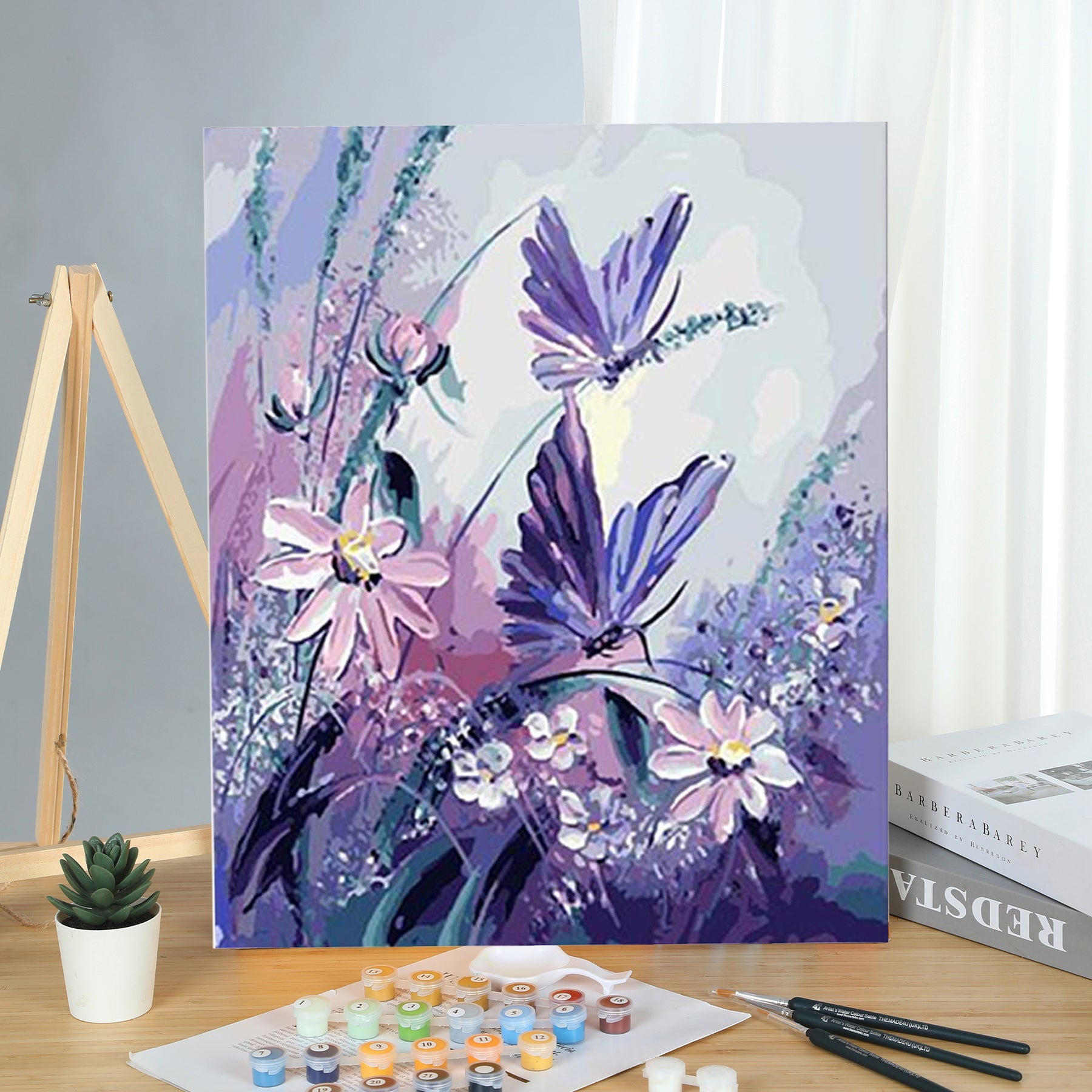 Made4u [ 20" ]  [ Wood Framed ] Paint By Numbers Kit Brushes and Paints for Adult ( Butterfly G406 )
