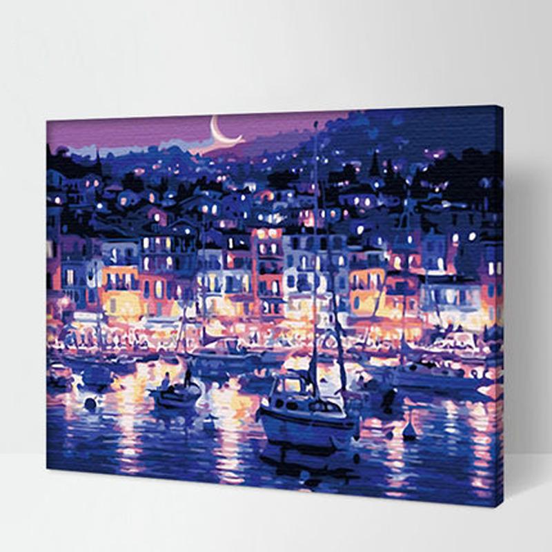 MADE4U [Waters Series] [20"] [Wood Framed] Paint By Numbers Kit with Brushes and Paints (Quiet Moon HHGZG145)
