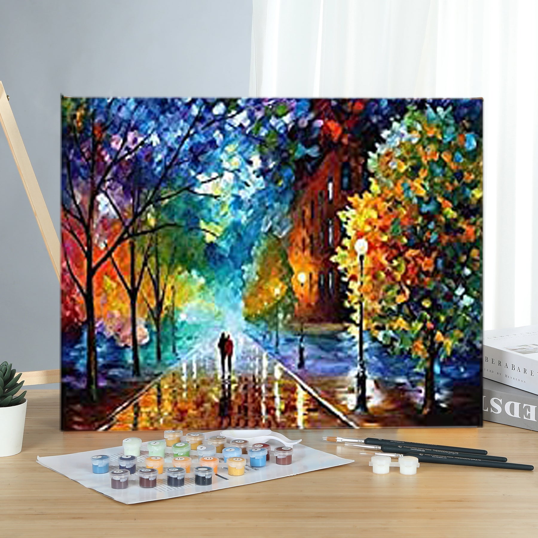 Size: 50x40(cm) 20x16(inch). Kits Including: Canvas(Mounted on wood frame), Brushes, Paints. It is a great gift for birthday, wedding or new accommodation.